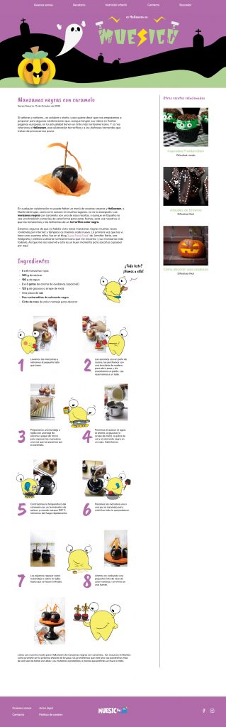 La intención del proyecto era seleccionar los atributos gráficos y tipográficos necesarios para “Muesico “ un Blog de cocina para niños de entre seis y doce años. La propuesta está pensada para pantalla de desktop.